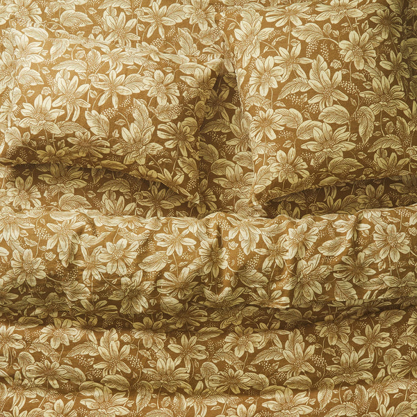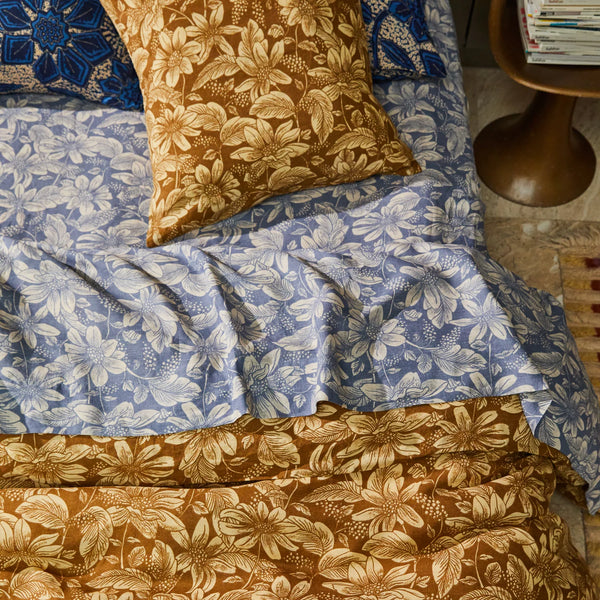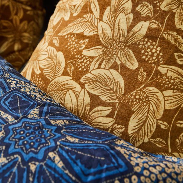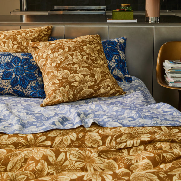 "Inspired by the nostalgia of vintage floral wallpaper, soften your space with the warm, tonal shades of Amrita. Drift off to sleep, imagining the aromatic scent of fragrant herbs and spices, wrapped up in a warm hug by ginger hues". – Phoebe’s Style Notes