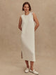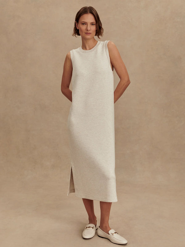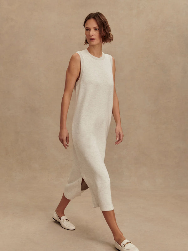 A chic wardrobe staple, the Beatrice is perfect for versatile styling. Crafted from DoubleSoft®, the Beatrice is cut to a chic midi length and a straight silhouette, featuring a classic crew neck with a decorative pointelle knitted trim on the neckline and armholes. The side split on both side seams with a sateen trim on the inside adds another intricate level of detailing.