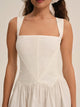 The Petal gingham midi dress was made for warm beach days, lakeside lounging, and everything in between. Crafted in a nostalgic peach gingham, this strapless midi dress spolights smocking, a figure-flattering drop-waist, and a decorative bow at the center-front.