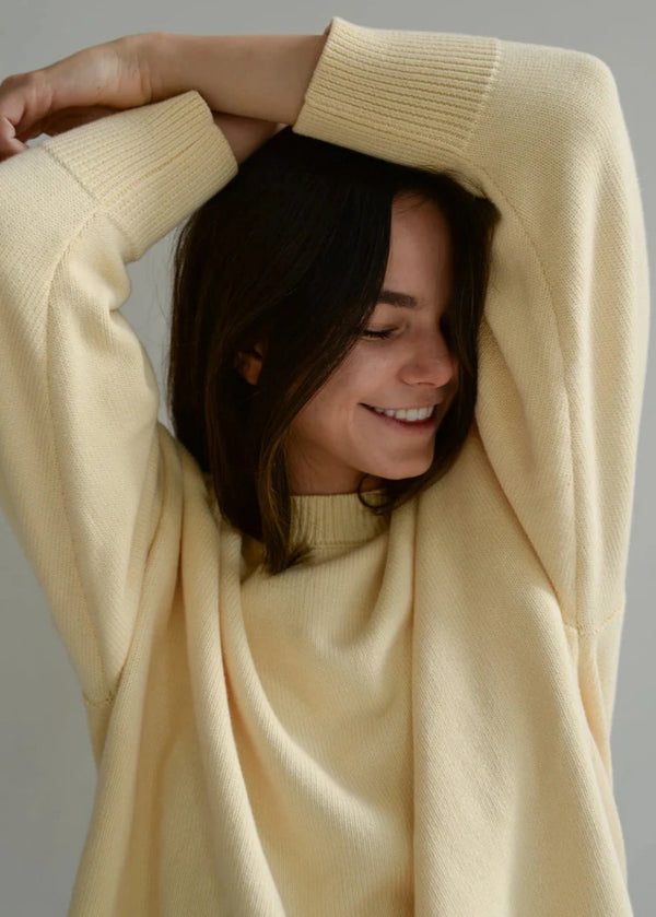 Featuring perfectly tailored sleeves, a fitted neckline, and a relaxed silhouette, this sweater balances thickness with a light, buttery softness.