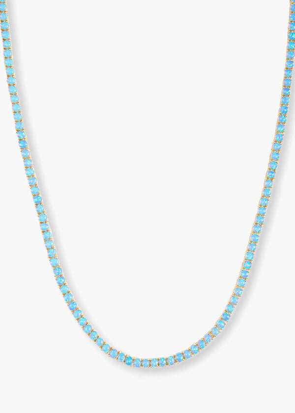 Blue is definitely your color! Our best-selling Grand Heiress Tennis Necklace gets a new life with our beautiful simulated blue opals. This style is easy and classy to put on and layer for a chic look. We are obsessed with how this necklace gives you regal elegance. Plus, every wardrobe needs a classic tennis necklace.
