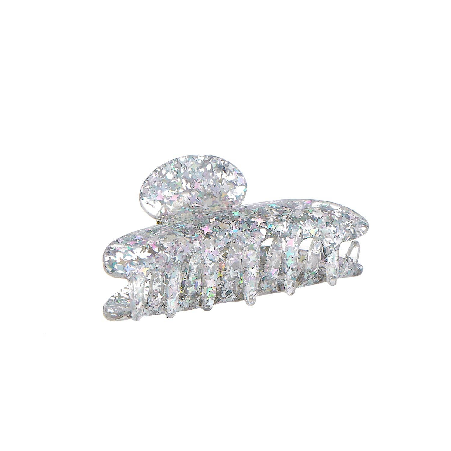 Introducing our brand-new product range … claw clips! Designed with little ones in mind, our fun disco claw clip adds a touch of disco fever to any hairstyle! Made in acetate and adorned with shimmering stars, the little grippy teeth will hold hair in place whilst little disco divas dance the night away! Made using cellulose acetate, a plant-based material from natural sources, its tough, safe and kind to the planet! Not suitable for children under 36 months due to small parts. Style code: CLW2404