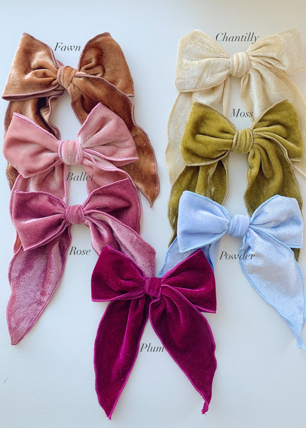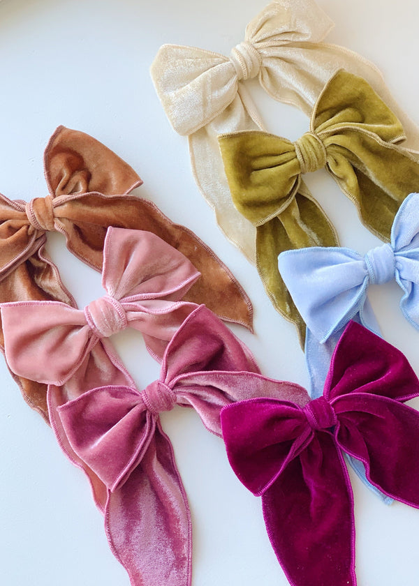 Made from soft-as-butter velvet, our Clara bow is an essential accessory for any bow lover.