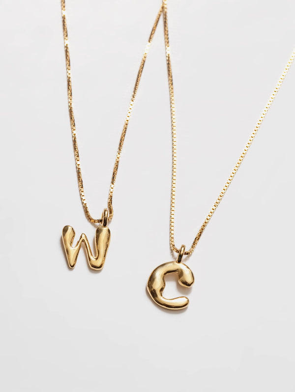18" 14k Gold vermeil box chain 14k Gold plated bronze letter charm Charm measures 15mm x 10-12mm Available in letters A-Z