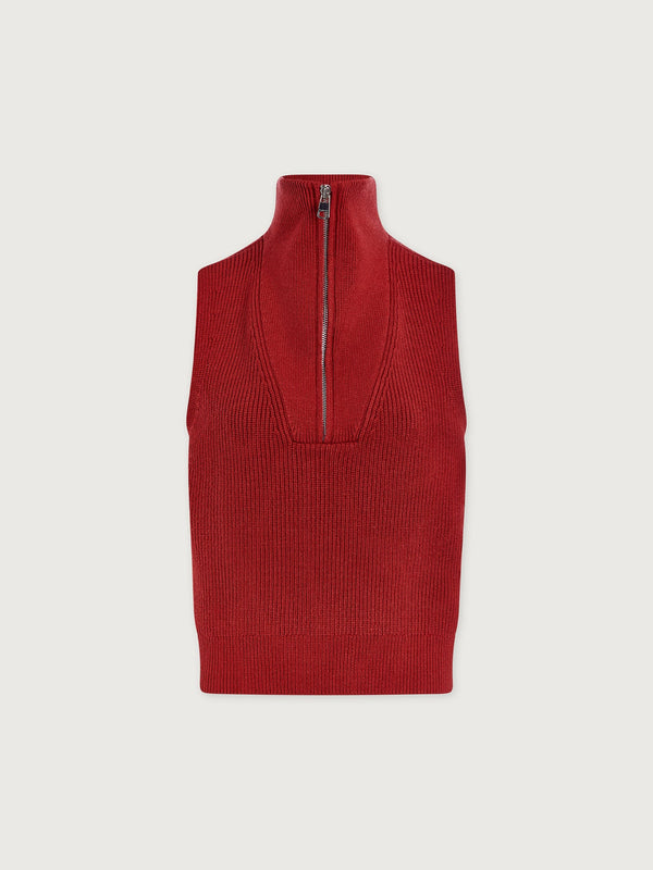 Elegant and versatile, the Amina is designed to be layered or worn solo alike. Crafted from a Soft Viscose knit with all-over rib, this sleeveless staple has a clean, elevated design with a half-zip collar and elegant detailing around the placket.