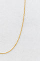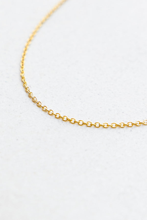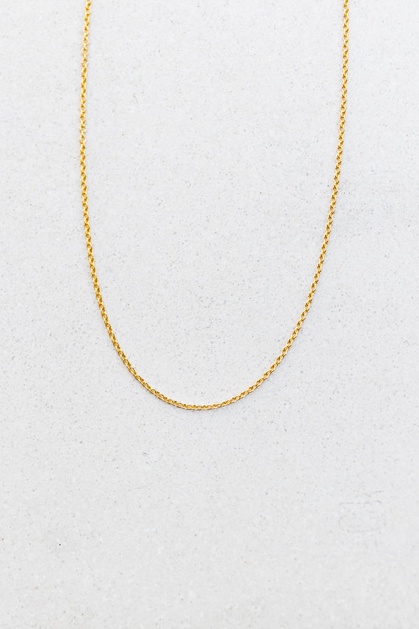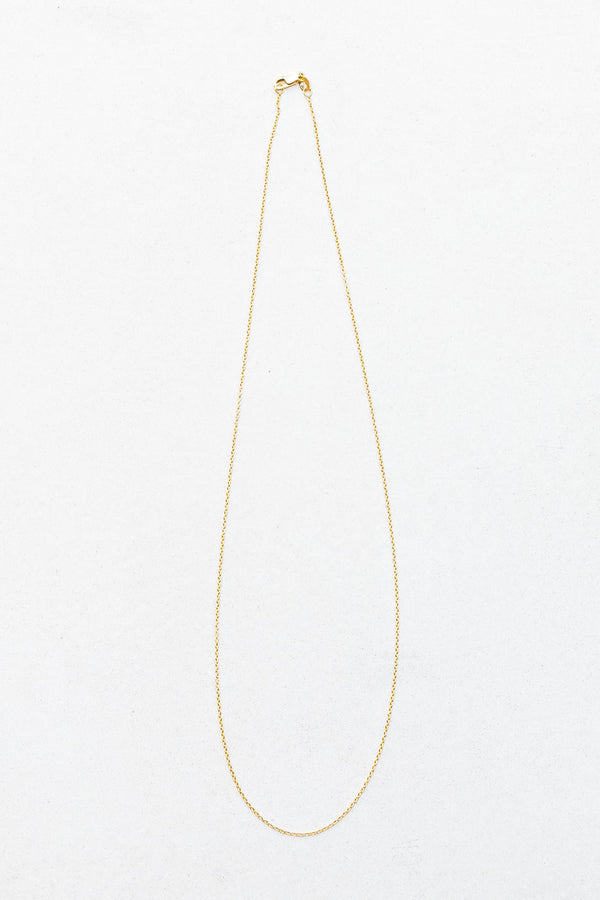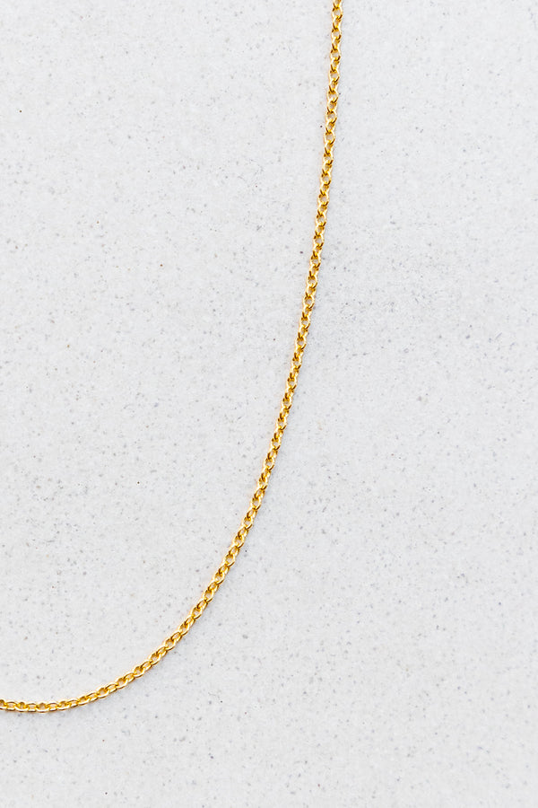 Round cable link chain crafted in 14k yellow gold measuring 1.5 millimeters in width.