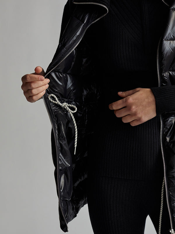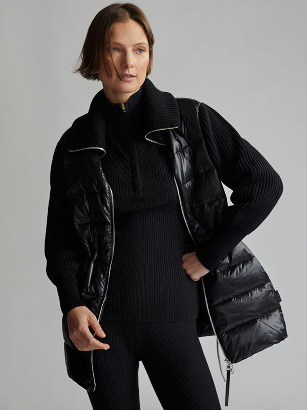 Crafted from premium fabric, this black Arlen Zip Jacket features a flattering ribbed collar for a sophisticated, tailored look. With a perfect balance of form and function, this luxurious jacket is designed to make a statement out in the cold weather.