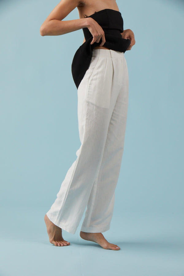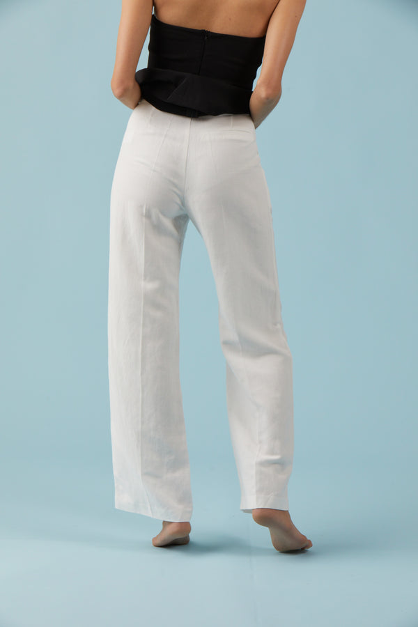 The Charlie Trousers in White are the perfect trousers for spring. Double layers and light fit.