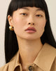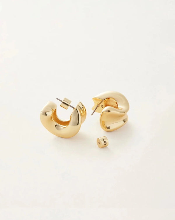 A chunky, mid-sized pair of hoops featuring sculptural curves and a rounded tail, as seen on Hailey Bieber and Audrey Plaza. Despite their bold body, they are lightweight, thanks to a hollowed out design.