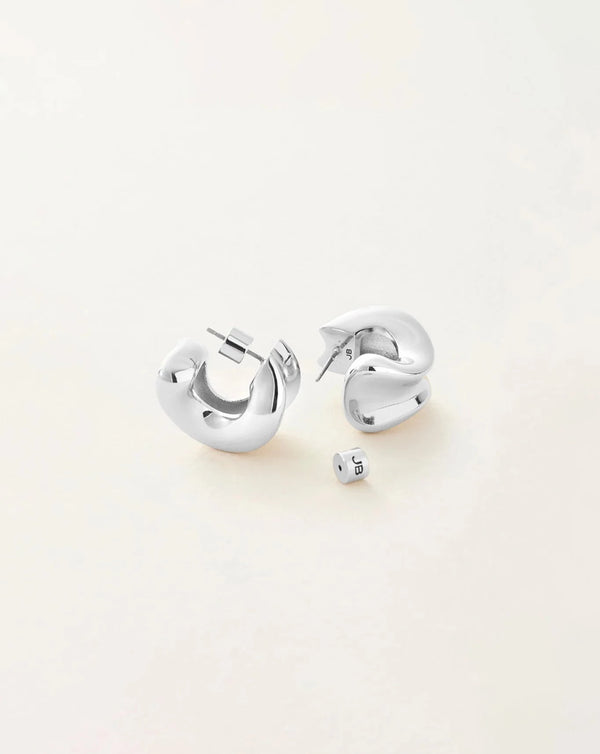 A chunky, mid-sized pair of hoops featuring sculptural curves and a rounded tail, as seen on Hailey Bieber and Audrey Plaza. Despite their bold body, they are lightweight, thanks to a hollowed out design.