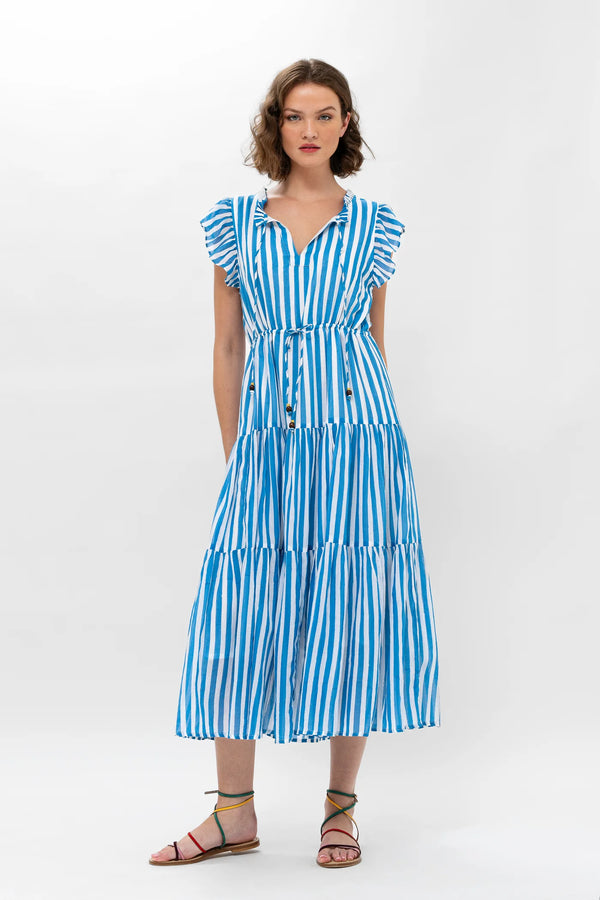 Our classic Cinched Flirty Dress in a Midi style with adjustable ties at the waist and neckline that makes for a perfect fit.