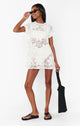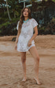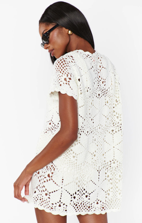 Crochet is having a moment and we are all about it! This white crochet mini dress is the perfect coverup for beach to poolside bar. Short sleeve and mini length, this is fun and flirty while providing coverage. For added length, we suggest sizing up!