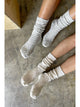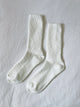 We were dreaming of a chunky, beautiful knit sock that felt effortless and romantically rustic. The rich texture, faded color palette, thick ribbing and organic scrunching of Cottage Socks invites feelings of wabi sabi and slowing living. These natural, cotton blend socks loves to be worn with vintage florals and tonal layers of luxurious natural fibers.