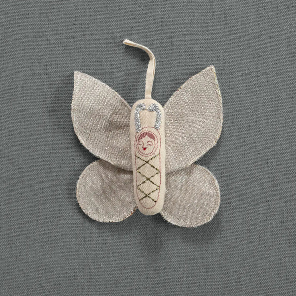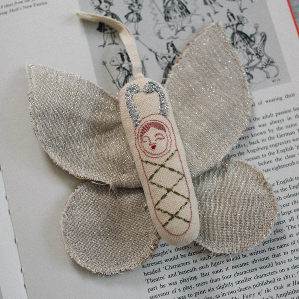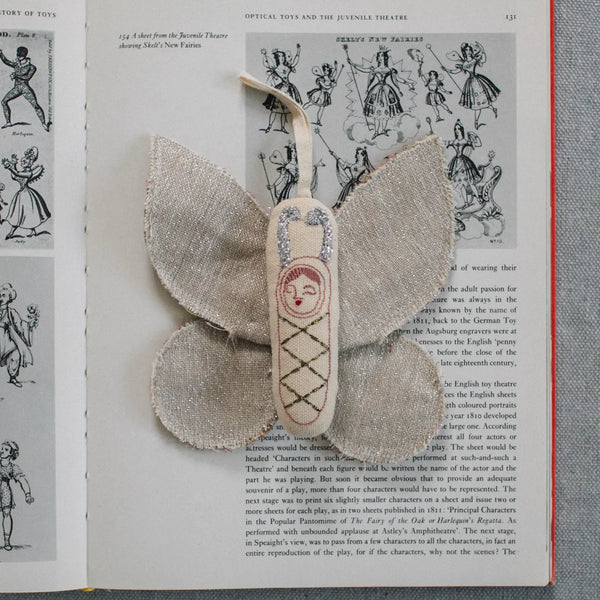 Magical creations constructed of cloth with care for your delight. Each unique character penned from Emma’s own imagination is handcrafted using a combination of embroidery and beadwork techniques on assorted linens, and stuffed with organic cotton.