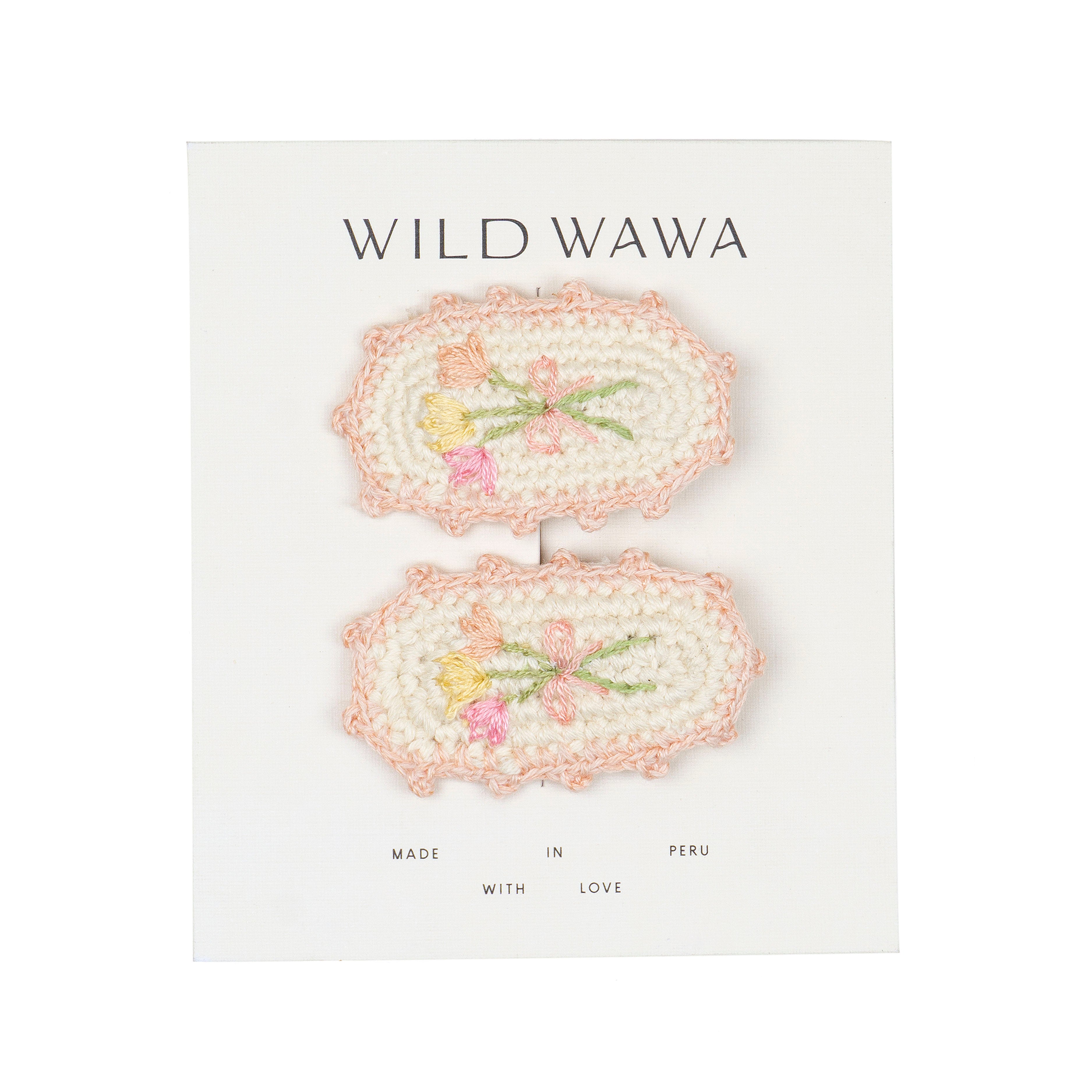 Our Crochet Clip Set in Petal Bouquet adds heirloom charm to any outfit. Each clip is hand-crocheted and features a hand-embroidered bouquet—matching our Crochet Dress and Bubble perfectly.