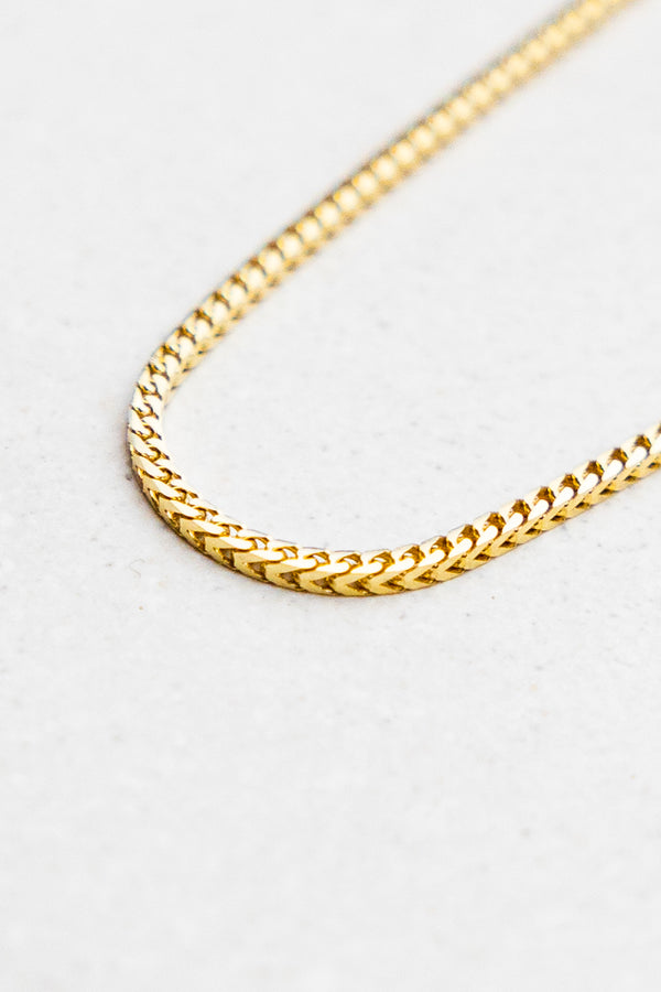 Franco chain crafted in 14k yellow gold measuring 1.2 millimeters in width.