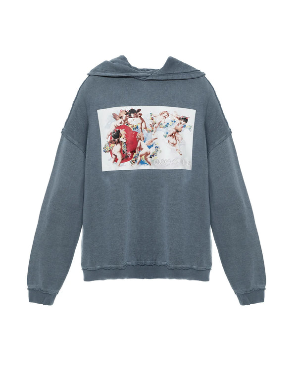Good luck ever taking this off. Oversized hoodie with front pocket.
