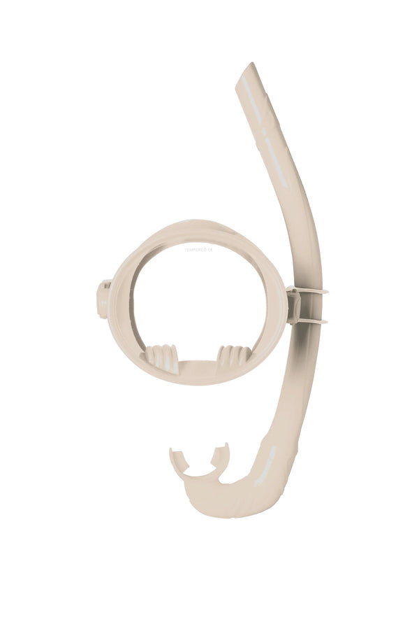 An update of our Signature Dive Mask, and now featuring a snorkel, this set was made to help you look beyond the surface and revere nature in all its glory.