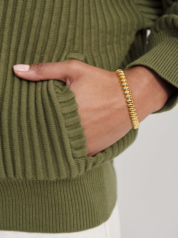 Introducing the Doncaster: a modern, chunky cotton knit jacket with a sleek Ottoman rib structure.