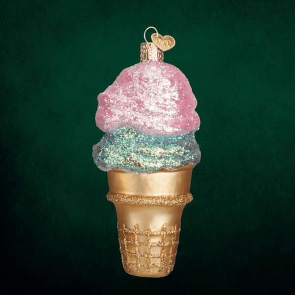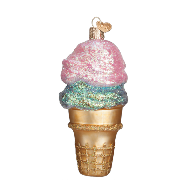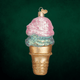 A delightful glass cone stacked with two scoops of glittering ice cream, sweet as summer and full of cheer. The perfect scoop of nostalgia for your holiday tree.
