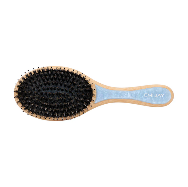 This brush is crafted with precision and features a harmonious blend of nylon bristles for effortless detangling, complemented by boar bristles that provide a glossy finish and help banish flyaways. It effortlessly adapts to the needs of any hair type, making it the ultimate everyday essential for those seeking a flawless and elevated hair care experience.