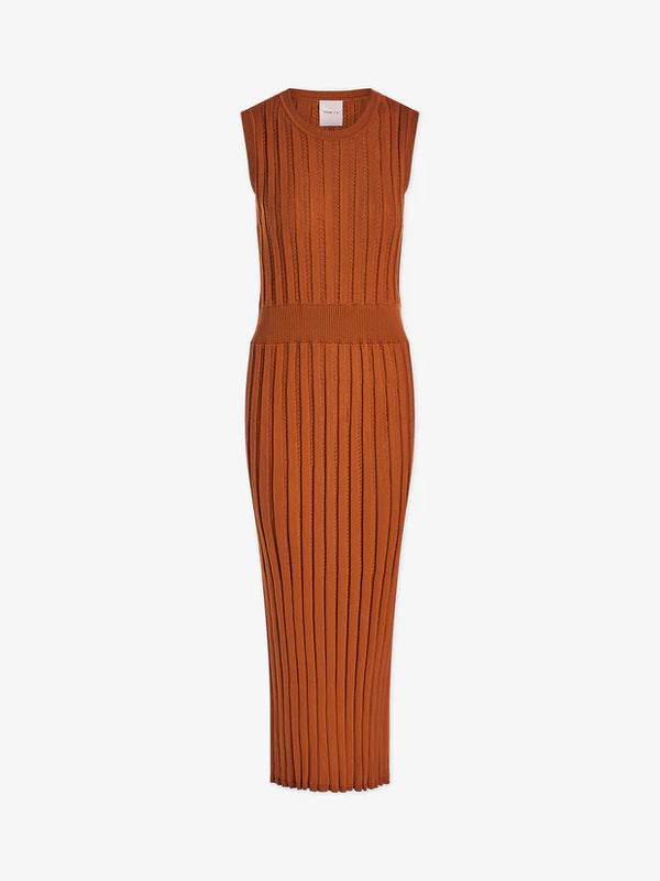 Knitted for a simple, form-fitting silhouette, this mid-length dress features a timeless crewneck and contemporary sleeveless design. Crafted from our lightweight pointelle knit, the ribbed waistband adds a touch of definition to this elevated staple. The perfect choice for warmer days, layer over swimwear when hitting the pool or beach.