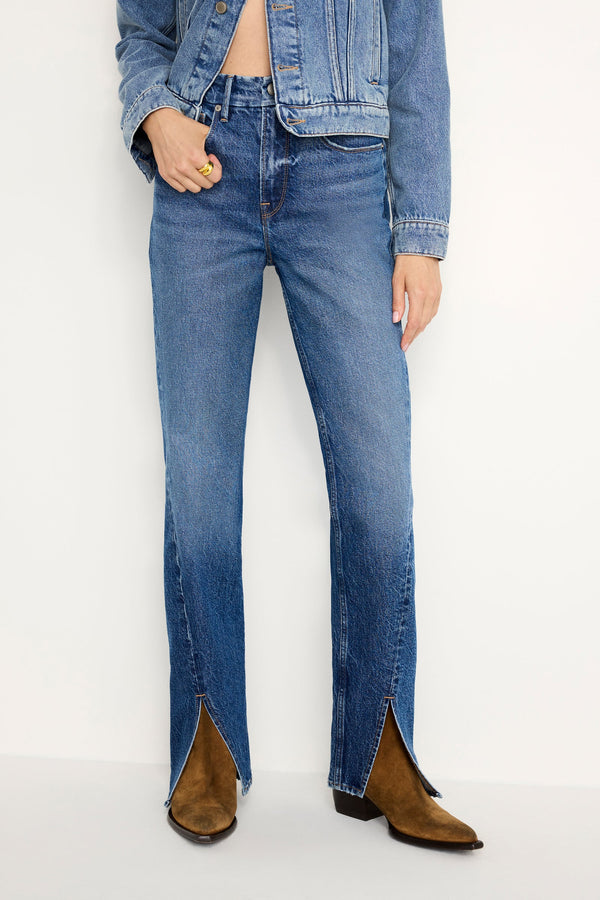 Jeans don’t get more iconic than this straight style that gives you legs for days, and holds you in, in the sexiest way possible. Good Icon Straight Jeans feature a high-rise, designed to be fitted through your hips and thighs with a timeless straight leg from thigh to ankle.