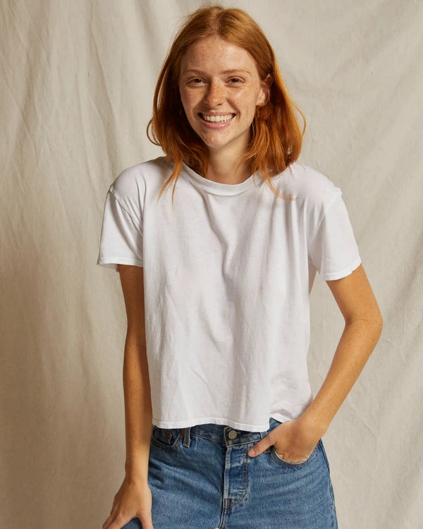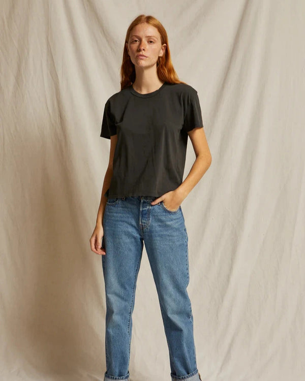 the ideal, relaxed-fit crew neck tee. subtly captivating, never overt. the must-have piece you'll want to don every day. matches perfectly with mid-rise denim. handpicked shades for any style. grab a couple; they're bound to be your all-time favorites.