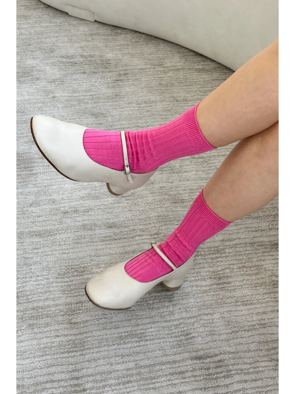 Our OG sock, the girl that started the legacy, is the sock that we felt was missing. She is the sock that will make you throw all your other socks away. Classically ribbed, perfect height, breathable cotton blend yarn in the most beautiful assortment of colors. She will pair with any shoe, sandals, sneakers, mules, clogs, boots, she is your go to sock! The perfect height, knit rib socks.