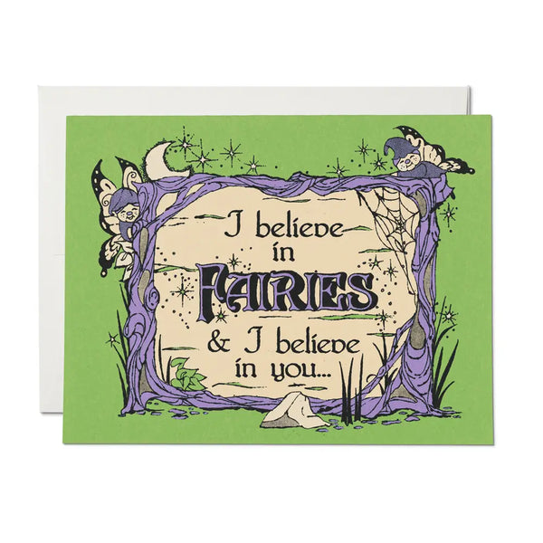 Blank inside. 100lb heavyweight card stock. Offset printed. 5.5 x 4.25 inches. Illustrated by Hannah-Michelle Bayley. Printed by Red Cap Cards in Los Angeles, California, USA, on recycled paper.