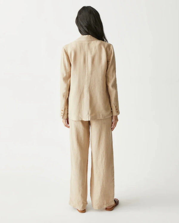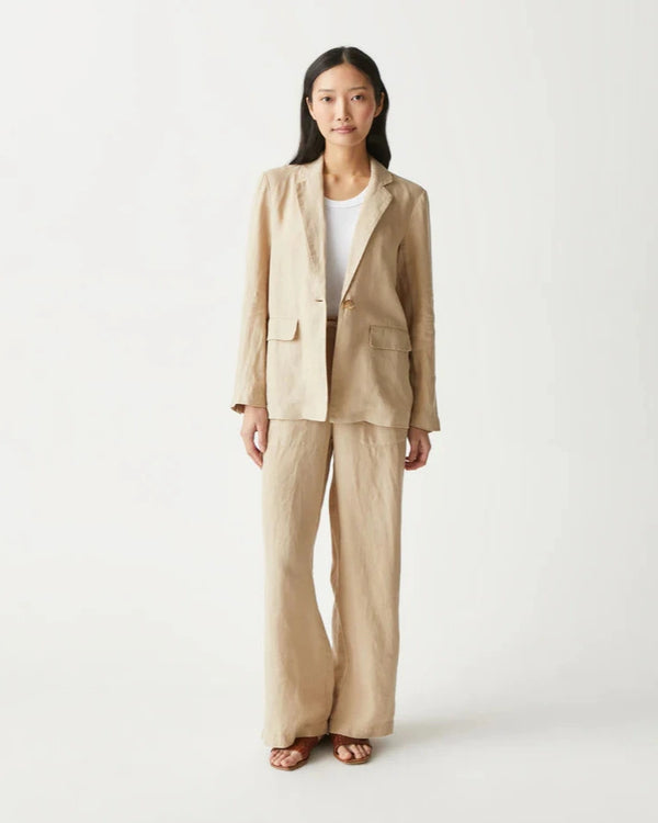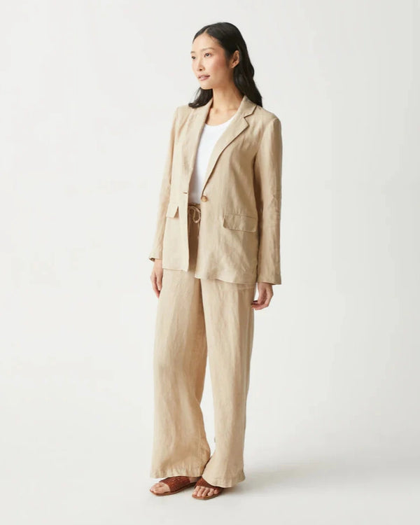 The linen pants you'll want to live in. Jules has a high rise with a wider leg and an adjustable tie waist with flirty ruffle details.