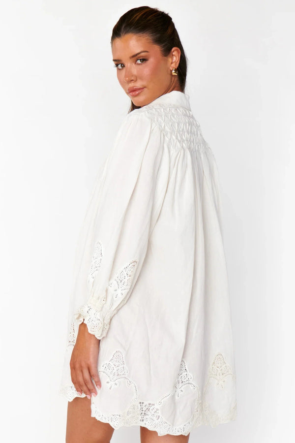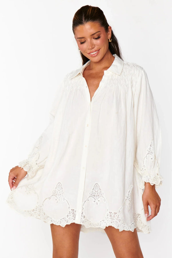 The Leona Mini Dress is effortlessly dreamy with its airy, relaxed fit and contrast embroidery. A collared neckline and button front add a touch of polish, while the flowy silhouette keeps it fun and femme. Play into the boho feel by wearing it on its own with booties, or layer it over little shorts for extra coverage. Perfect for vacation strolls or breezy days out and about!