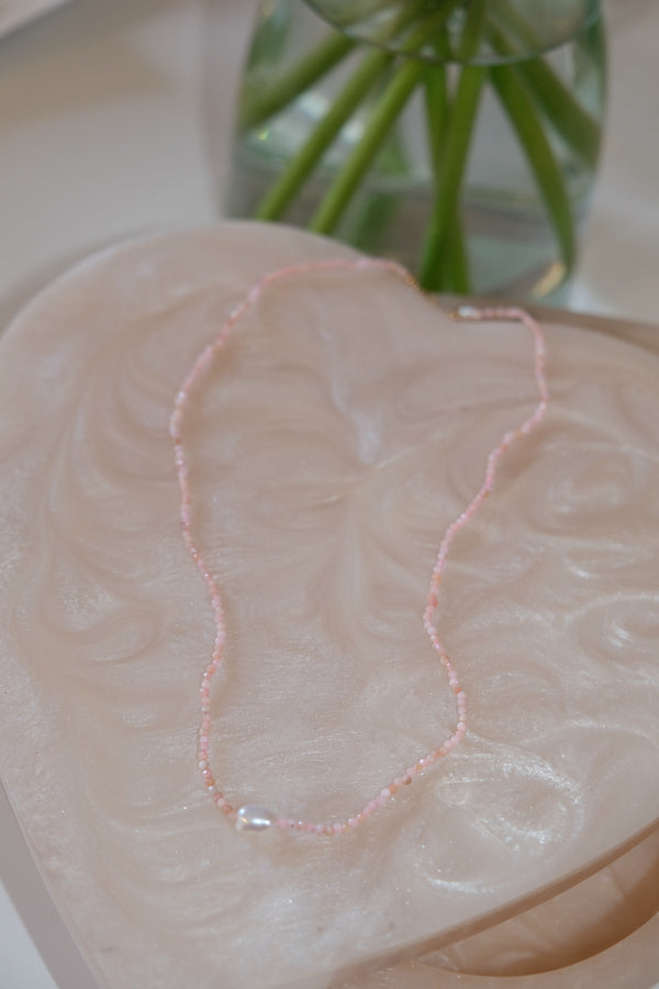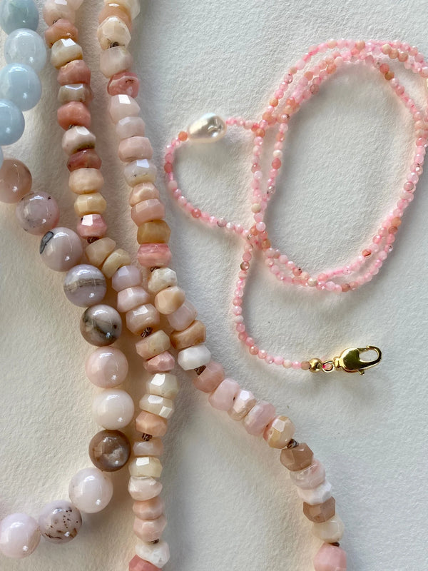 Made with natural pink opal, keshi pearl and gold filled hardware