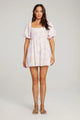 Our Mollie Mini Dress in natural is the perfect outfit for spring. Crafted from 100% Cotton, this piece features a flattering neckline and a burst of pastel colors. Mini dresses are an indisputable season staple and can be styled in many ways.