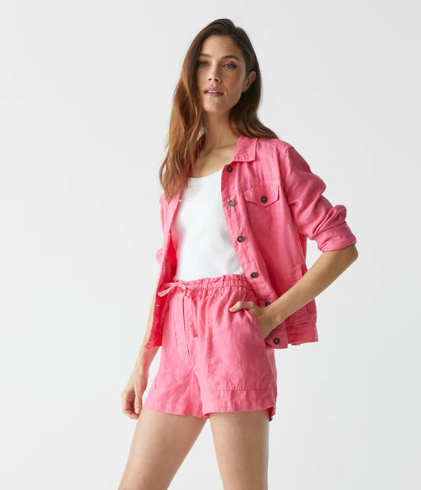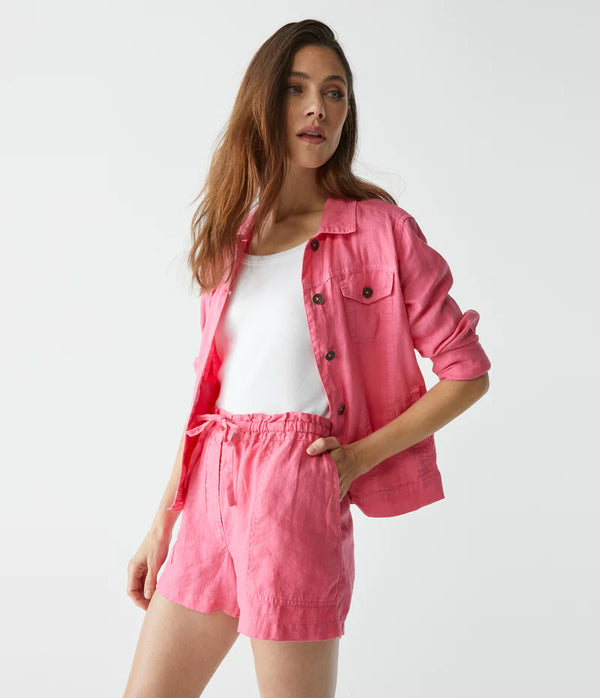 These stylish and refined ruffled shorts feature drawstring detail and slant front pockets. These super-soft shorts make for an elevated yet casual style. Made from 100% biodegradable linen that is lightweight and breathable.