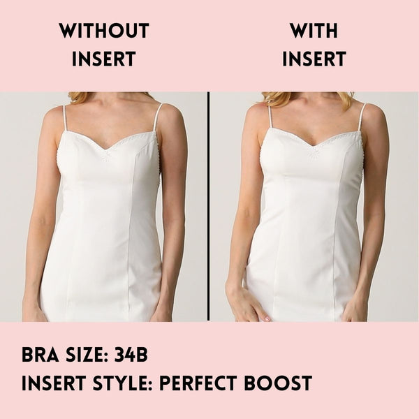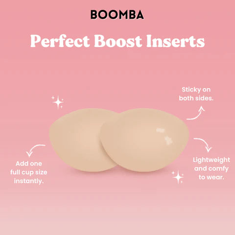 Perfect Boost Inserts are abalone-shaped inserts that increase your cup size by one cup. They give your bust a fuller look when you wear those plunging necklines and low-cut dresses.