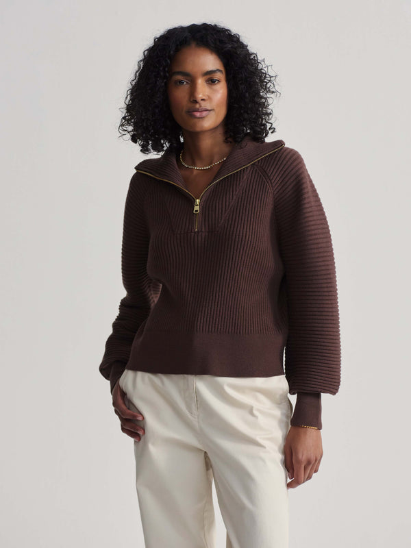 Reid Half-Zip Knit in Coffee Bean