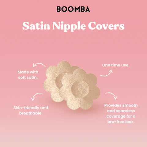 BOOMBA's Satin Nipple Covers lay seamlessly against your skin. Long-lasting and gentle, these nipple covers are a staple in every girl's wardrobe.