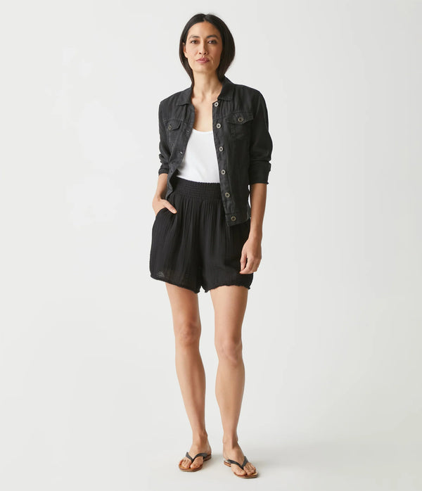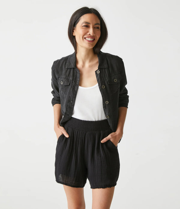 The shorts you’ll never want to take off. Our Sia short has an ultra-comfortable smocked waist and flows beautifully over your hips, thanks to its double gauze fabrication. Plus, pockets.