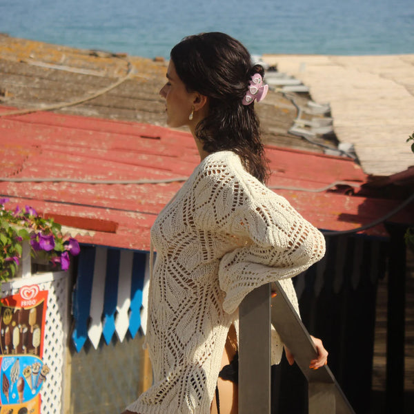 Sweet as can be, this clip is made with beautiful tiny stones and biodegradable acetate. Designed with love and ultra-femininity in mind, our Sweetheart Claw Clip will hold your hair from morning until night. Perfect for a low bun or half-up-half-down look.
