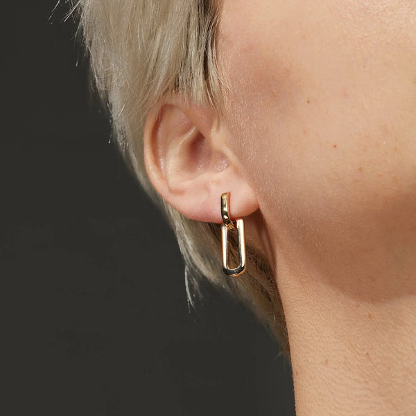 A snug little huggie with a detachable link drop, this earring can be adjusted depending on your mood or outfit. Wear the huggies everyday and add the detachable link when you need a little extra. Note: This earring and the length of its post are on the shorter side, making it feel a little snug if you have thicker earlobes or a higher piercing. Finished in high polish gold.