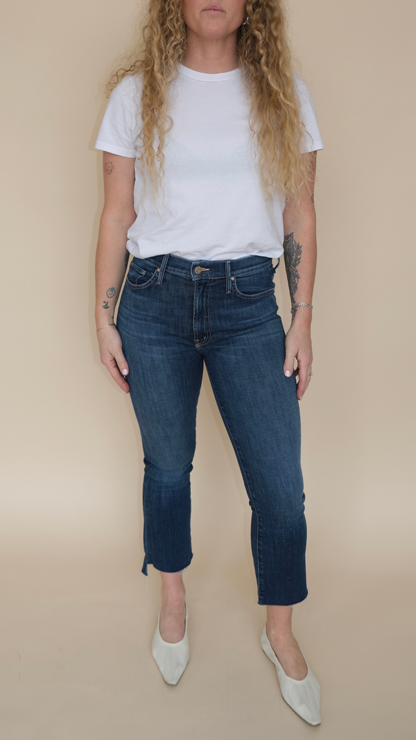 This iconic high-waisted bootcut hits at the ankle with a frayed step-hem. Made from stretch denim, Girl Crush is a slightly faded vintage-inspired wash.
