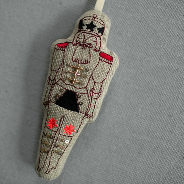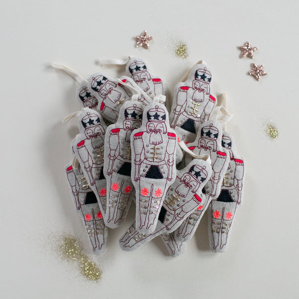 Skippy Cotton's signature lavender-scented ornaments are a lovely gift for any time of year. Perfect for gift toppers, closet or drawer sachets, holiday ornaments, or year-round décor. Each scented ornament is hand illustrated and embroidered using vibrant polyester threads on assorted linens. Each ornament is hand cut, turned, and stuffed with organic cotton and lavender. Natural twill tape is placed on top for hanging.