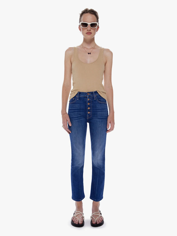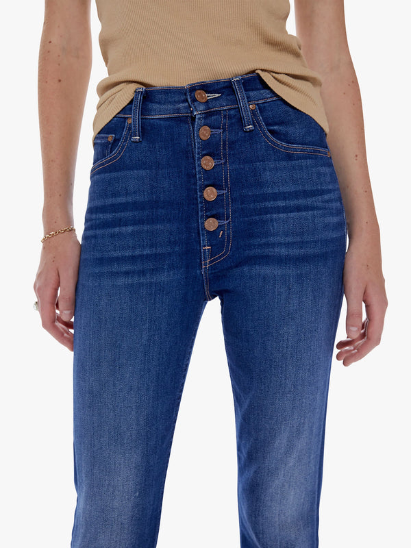 Cabs are here. The perfect high-waisted straight leg with an exposed button-fly, ankle-length inseam and a clean hem. Cut from comfortable stretch denim, Taxi! is a dark blue wash with whiskering and fading at the knee.