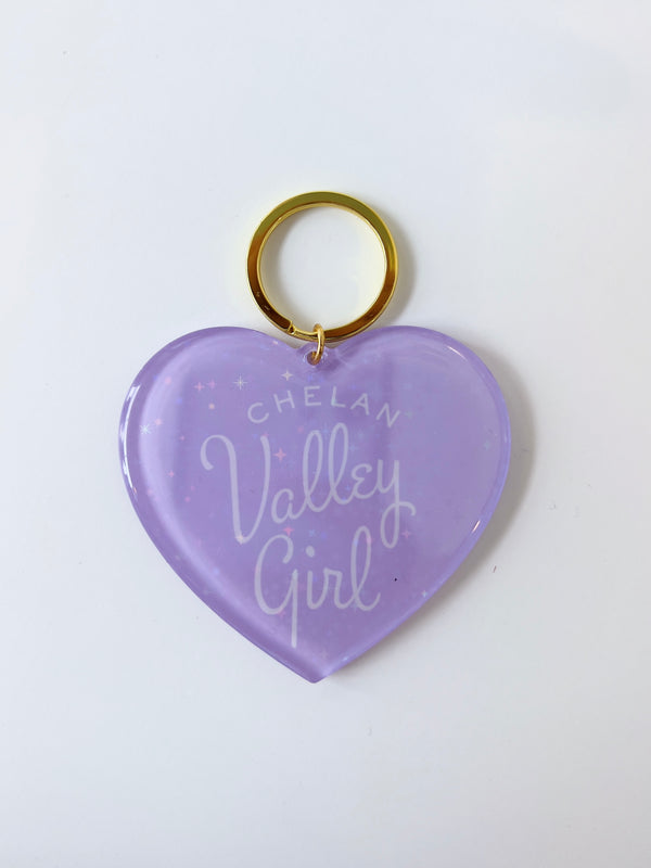 This stylish Valley Girl Keychain features a design inspired by the beautiful Chelan Valley. Hand-crafted with shimmer on one side, it is sure to add a subtle bit of sparkle to your keys, backpack, anything you can clip it onto!
