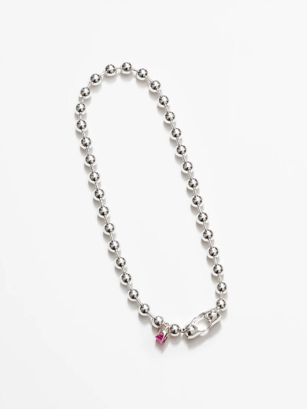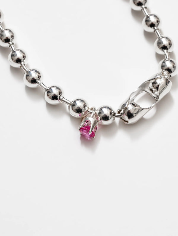 - 16" 925 sterling silver plated brass jumbo ball chain necklace with a round synthetic pink sapphire gemstone charm