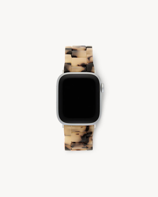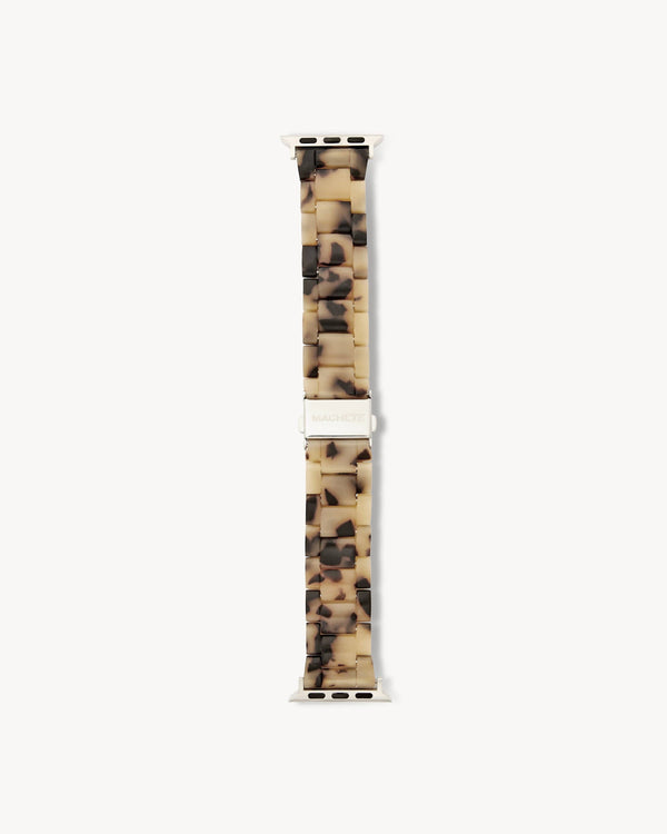 A classic oyster-style band, reimagined for the Apple watch in our fine Italian acetate. Deluxe edition includes a resizing kit and adaptable connector for a universal fit. - Italian acetate finish - Hypoallergenic, stainless steel hardware - 8" inch band; resizing kit included - Universal Fit Apple Watch Bands come with 2 different connector pieces to fit with Apple Watches sizes 38-41mm and 42-45mm. - Does not currently fit Series 10 watch. - Three hardware color options (silver, black, rose gold)