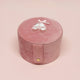 This lovely velvet jewellery box is the perfect place to keep all your Rockahula jewellery and favourite treasures safe! Featuring an embroidered pair of pink ballet slippers with satin ribbon detail, this jewellery box opens to reveal three compartments, a slip pocket and a dedicated space to slot earrings and rings. Lined with our starry fabric.