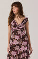 Delicate cowl drapes add texture and a touch of romantic charm to this maxi length dress. Perfect for weddings, fancy dinners, or any occasion where you want to feel beautiful without trying too hard.