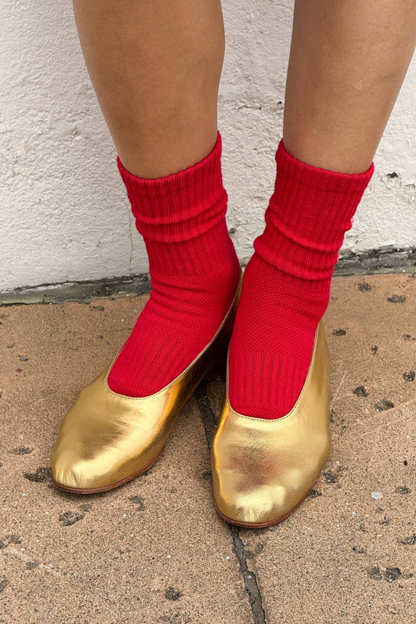 The Boyfriend Sock is one of our signature styles and a year round bestseller. She is the perfect mix of function and fashion creating an effortless sporty vintage charm to any outfit. She is slightly longer than a classic crew and has a contrast double stripe. Durable and comfortable she upgrades any outfit.